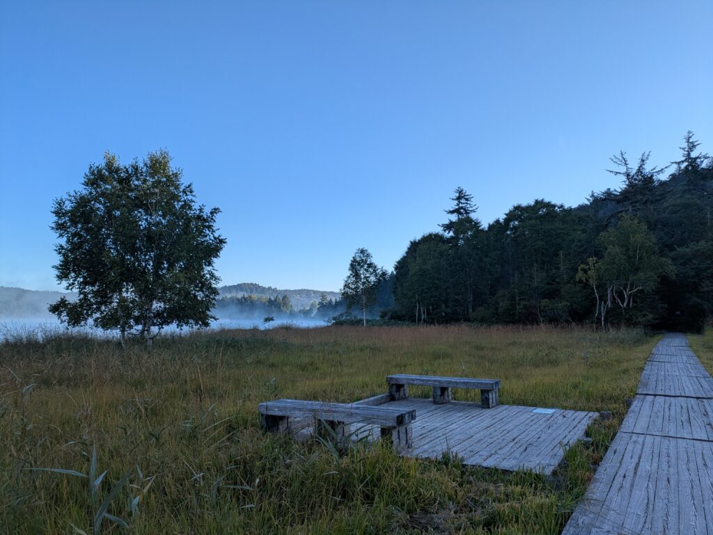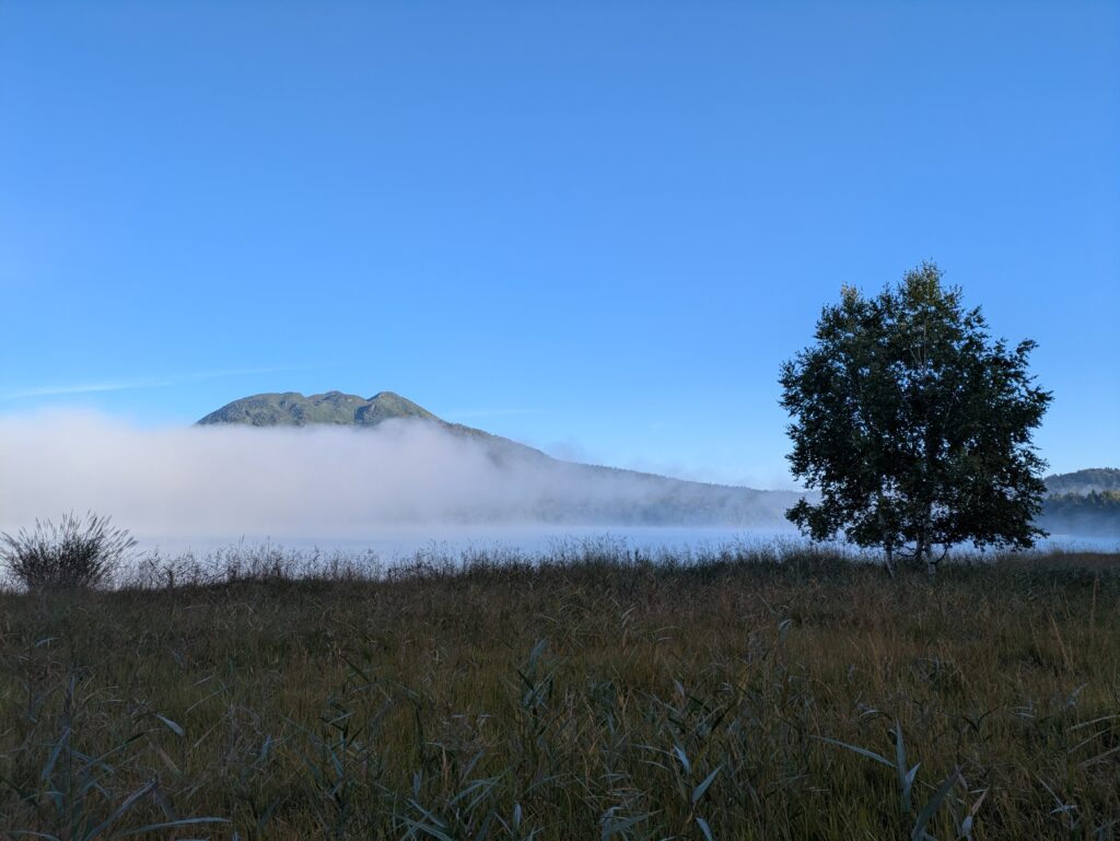 尾瀬沼は標高1,660mと高めで盆地の地形をしているため、冷たい空気が溜まりやすい性質、とのこと。冷え込みが厳しい秋、まさにこの日の朝のような気温によって、雲海のような現象が綺麗に見られたのではないかと。