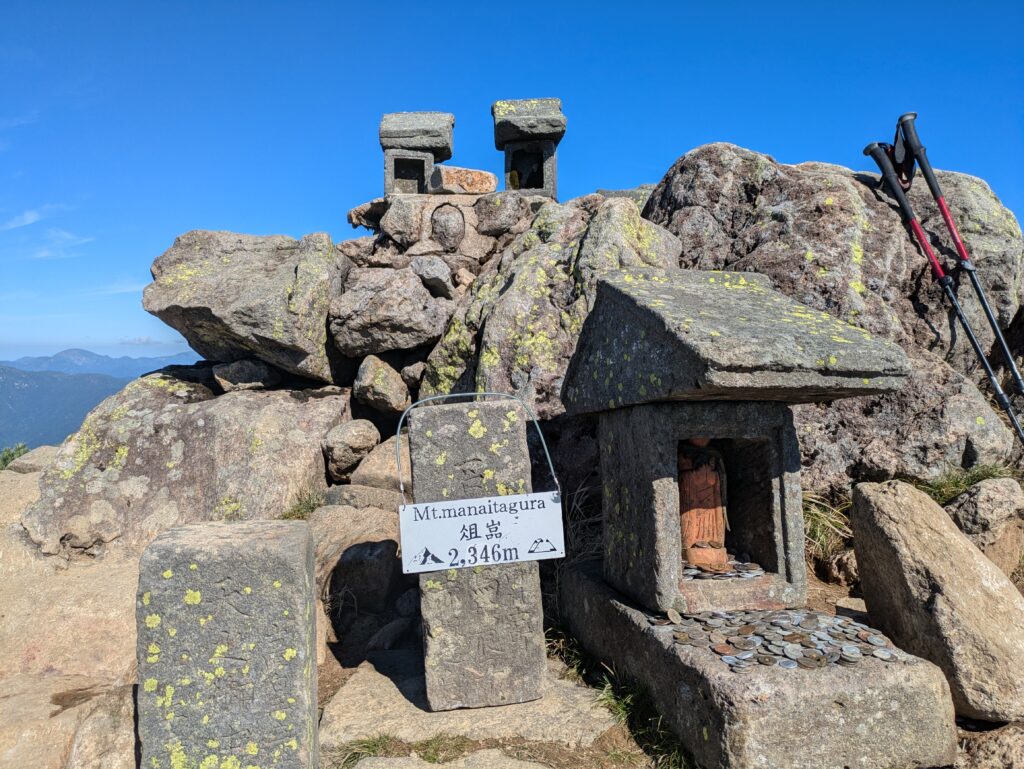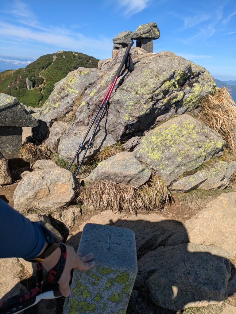 三角点タッチ。流石に疲れたので、ここで水分補給など少しだけ休憩