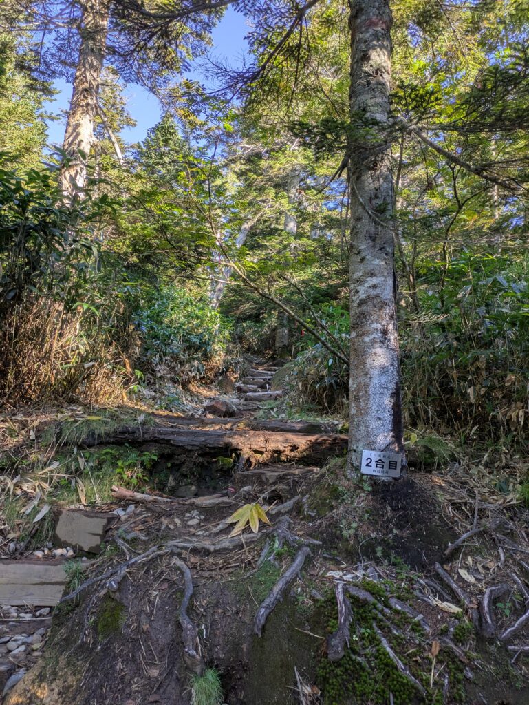 1合目は見落とし。2合目。尾瀬沼から、この後暫く完全に一人で熊にビクビクしながら歩きました🫣