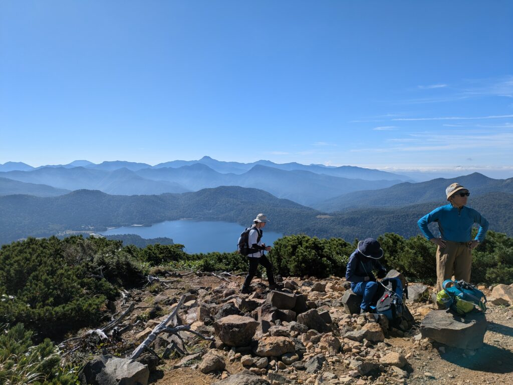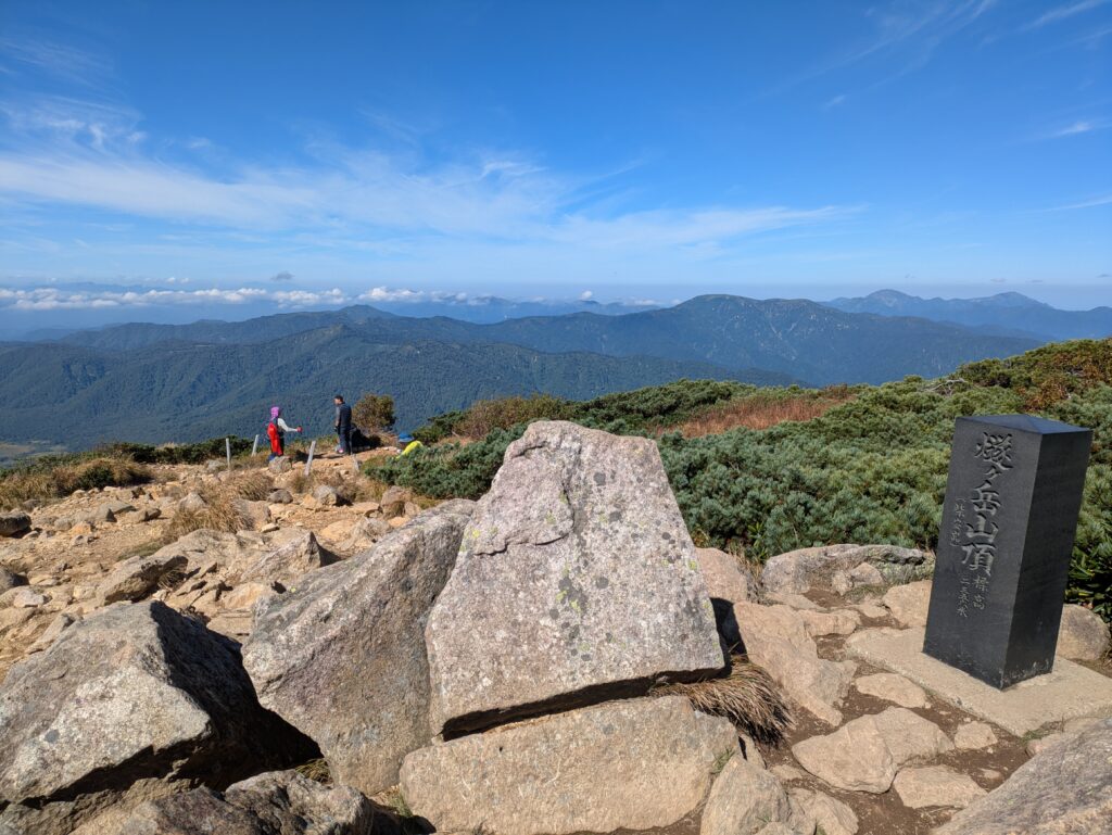 休憩してる人もそこそこ。奥の山々は何なのかな。山座同定できる方いたら教えてください。
