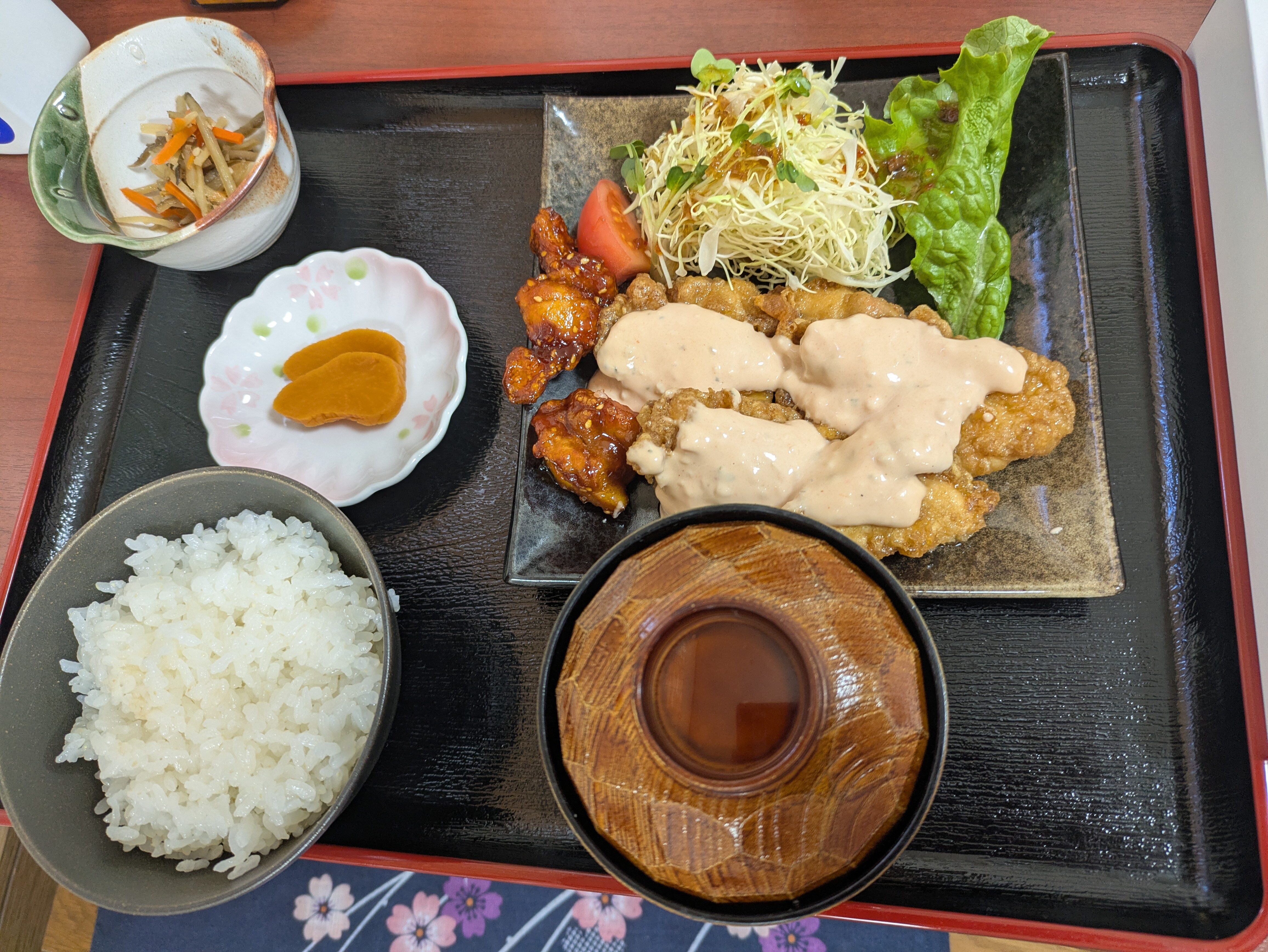 近くの食堂でチキン南蛮定食(1,210円+税)