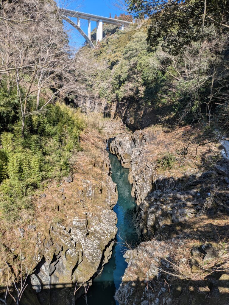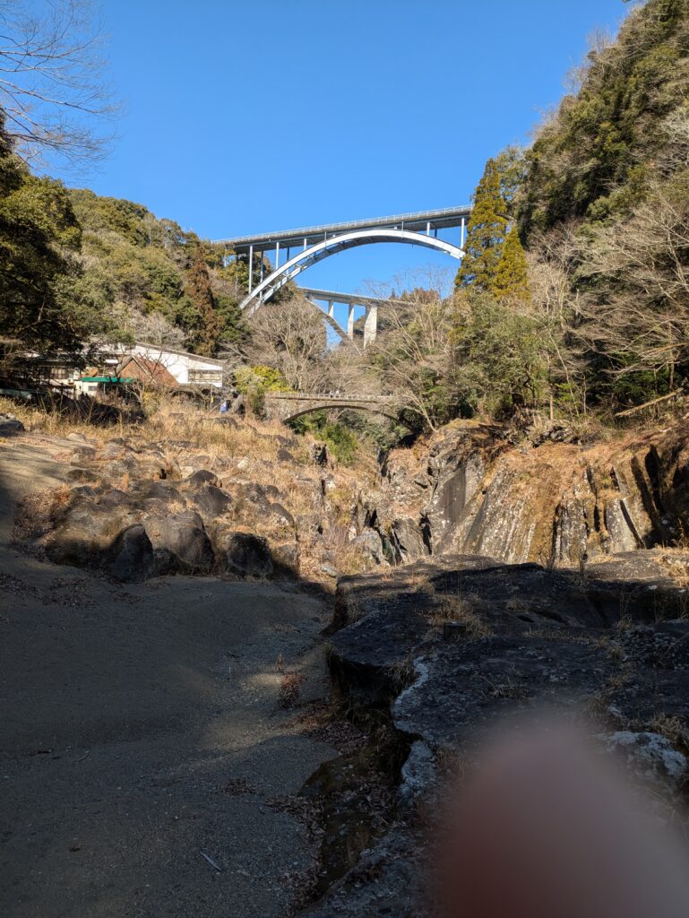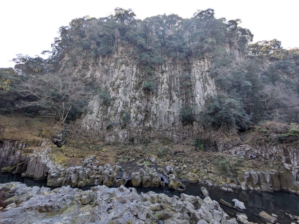 個人的には、滝やアーチよりも『仙人の屏風岩』、こちらに惹かれました。その名の通り屏風を立てたような巨大な岩壁が特徴の景観。遊歩道があるため近づけないですが、遠くても思わず見上げてしまうほどの高さと迫力に圧倒されます。岩肌はまるで人の手で切り出したかのように整って見え、自然が長い年月をかけてつくり出したとは思えないほどの存在感。