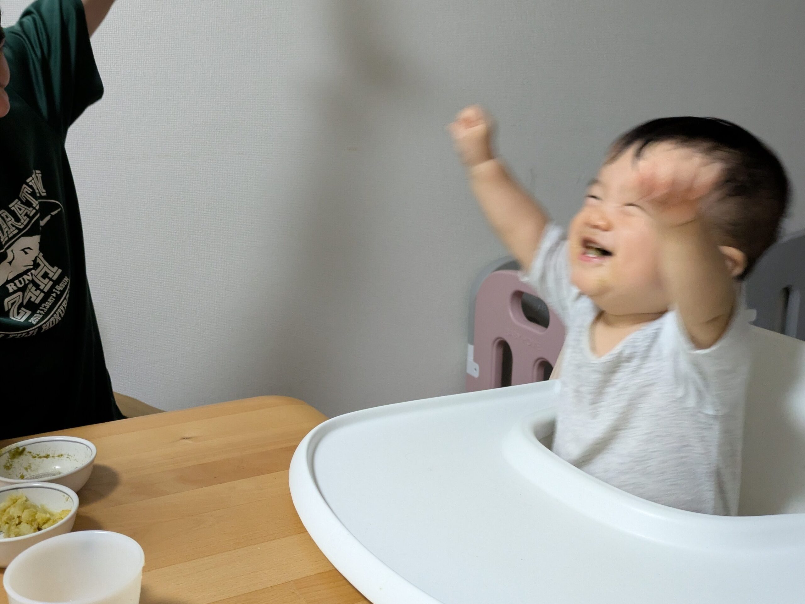 ごはん中に、美味しかったのか楽しいのか、「フーーーーーッ」な息子